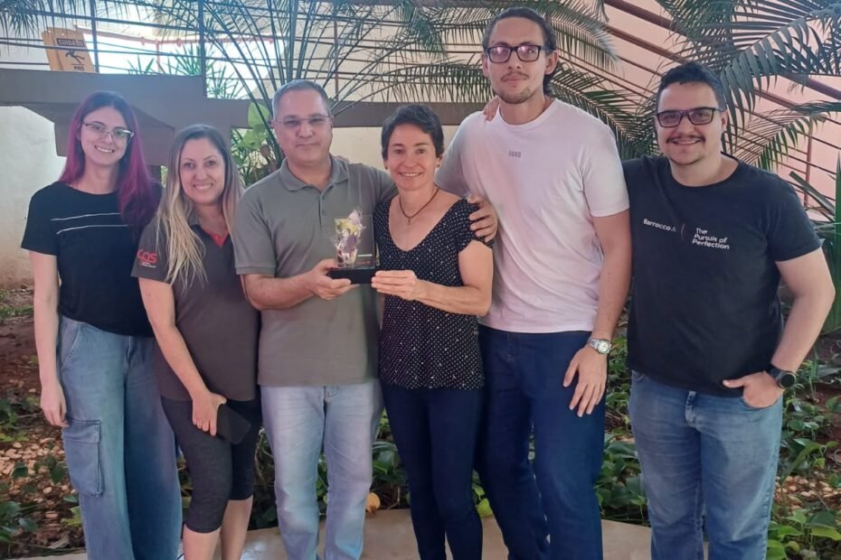 Na foto, membros da FATEC recebem o troféu de 10 anos do projeto. 🌳