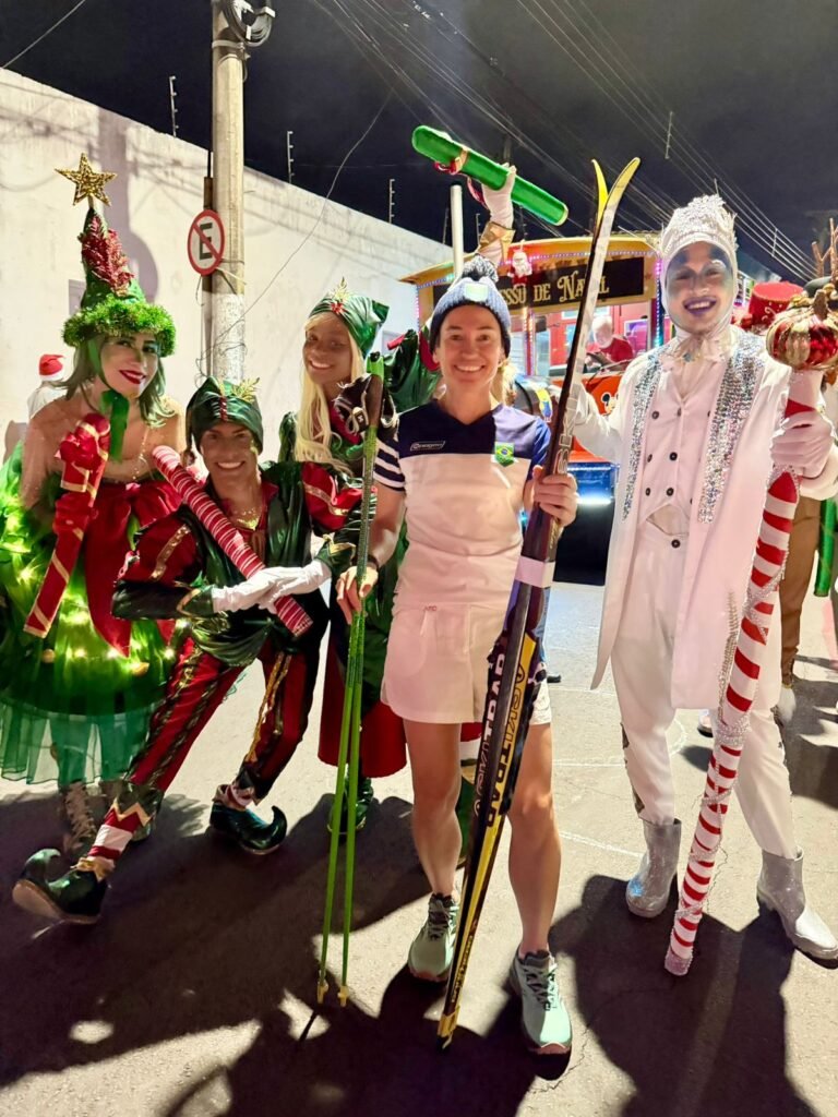 Seguia juntamente com as diversas atrações o Papai Noel, desfilando ao lado de duas ‘mamães noéis’ em cima da carroceria de uma pick-up. Da mesma forma, seguia o “trenzinho” completamente lotado, com participação de adultos e crianças.